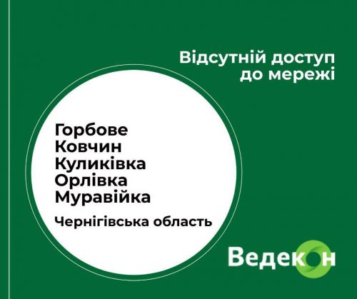 Шановні абоненти, через відсутність живлення на вузлі зв’язку, відсутній доступ до мережі Інтернет в таких населених пунктах Чернігівської області:
