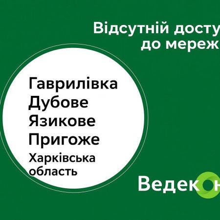 Шановні абоненти, через аварію на магістральній лінії відсутній доступ до мережі Інтернет у таких населених пунктах Харківської області: